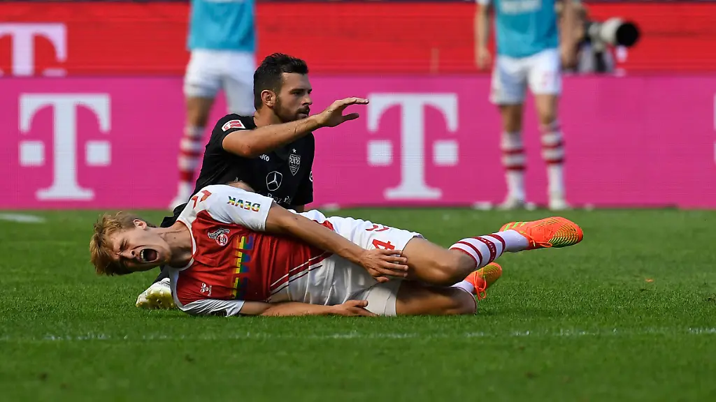 Ein Tor schießt weder der VfB Stuttgart noch der 1. FC Köln, trotzdem gibt es im Aufregung auf dem Rasen. Luca Pfeiffer kommt in einem Zweikampf deutlich zu spät, landet wuchtig auf dem gegnerischen Sprunggelenk - und wartet jetzt auf seine Sperre. Dann fliegt auch VfB-Coach Pellegrino Matarazzo vom Platz.