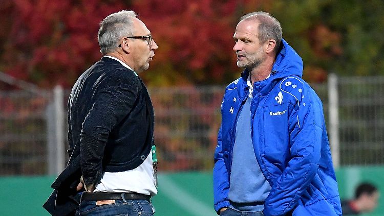 Darmstadts Sportdirektor Holger Fach (r.) war nach dem Pokal-Aus schlecht drauf.