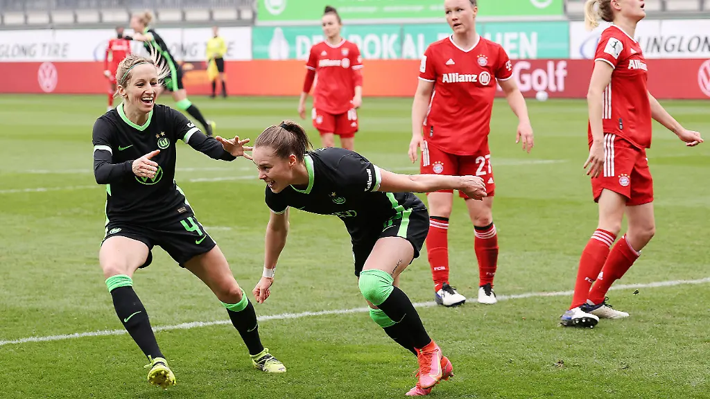 Kapitänin Alexandra Popp (13.), deren Fußverletzung kurz vor Schluss für Sorgenfalten beim VfL sorgte, und Ewa Pajor (45.+2) entschieden mit ihren Toren den Showdown in Wolfsburg. Der FC Bayern musste im 27. Pflichtspiel der Saison die erste Niederlage hinnehmen und seine Triple-Hoffnungen begraben. Im Pokalfinale am 30. Mai in Köln bekommt es der Meister aus Wolfsburg mit Eintracht Frankfurt zu tun. Der Rekordsieger vom Main hatte am Samstag nach Rückstand 2:1 (0:1) gegen den SC Freiburg gewonnen.