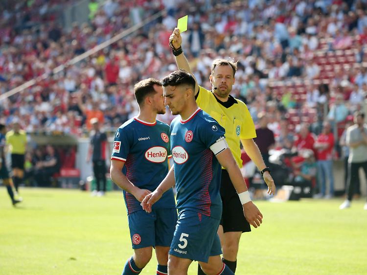 Die richtige Entscheidung nach der falschen: Markus Schmidt zeigt Kaan Ayhan die Gelbe Karte.