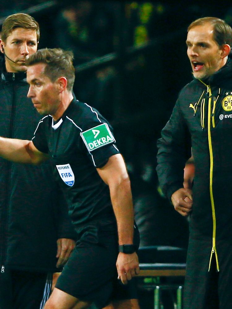 Der Spielverlauf schien seine Entscheidung zunächst nicht unbedingt zu bestätigen, denn die Begegnung wurde in den folgenden Minuten erkennbar härter, die Fouls häuften sich. Der Referee pfiff nun sinnvollerweise etwas kleinlicher und musste mehrmals seine ganze Persönlichkeit aufbieten, um die Spieler wieder "einzufangen". Als richtungweisend erwies sich seine deutliche und außenwirksame Ermahnung des Dortmunder Trainers Thomas Tuchel, der nach etwas mehr als einer halben Stunde allzu vehement auf eine Entscheidung des Unparteiischen reagiert hatte. Zum Ende der ersten Hälfte hatten sich die Gemüter wieder einigermaßen beruhigt. Über Bartras Halten gegen Lewandowski sprach da niemand mehr.