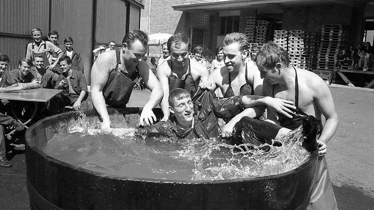 Schwarzenbeck wird nach erfolgreicher Beendigung seiner Buchbinderlehre gegautscht.