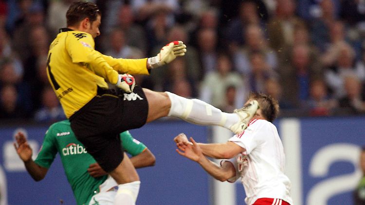 Denn nur ein Jahr zuvor war Tim Wiese beim Derby in Hamburg mit einem Kung-Fu-Tritt nur äußerst knapp am Gesicht des HSV-Profis Ivica Olic vorbeigesprungen. Die irre Szene eines Wahnsinnigen! Tatsächlich sollte gegen Wiese damals anschließend wegen "versuchten Totschlags" ermittelt werden - doch der Werder-Keeper zeigte sich darüber nur verwundert: "Derjenige, der mich angezeigt hat, forderte, ich solle die gerechte Strafe bekommen. Wahrscheinlich meinte er Knast." Seine Aussage direkt nach dem Spiel ließ allerdings tiefer blicken, als es der extrovertierte Keeper wohl selbst ahnte: "Ich wollte ihn nicht verletzen. Mir war aber schon beim Herauslaufen klar: Entweder ich treffe den Ball oder ich fliege vom Platz."