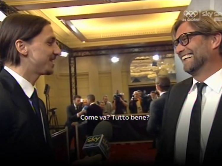 Vor laufenden Kameras fiel Superstar Zlatan Ibrahimovic dem damaligen BVB-Trainer bei der Fifa-Fußball-Gala im Januar 2014 in Zürich um den Hals. Der Schwede lächelte Klopp an: "Sag mal, wann holst du mich denn endlich nach Dortmund?" Klopp taumelte leicht irritiert zurück, schüttelte weiter Ibras Hand und stammelte dann: "Naja, dafür müsste ich erst meine komplette Mannschaft verkaufen." Ibrahimovic schüttelte den Kopf: "Ach, ich komme doch umsonst. Das sollte jetzt nur nicht der Präsident von Paris hören."