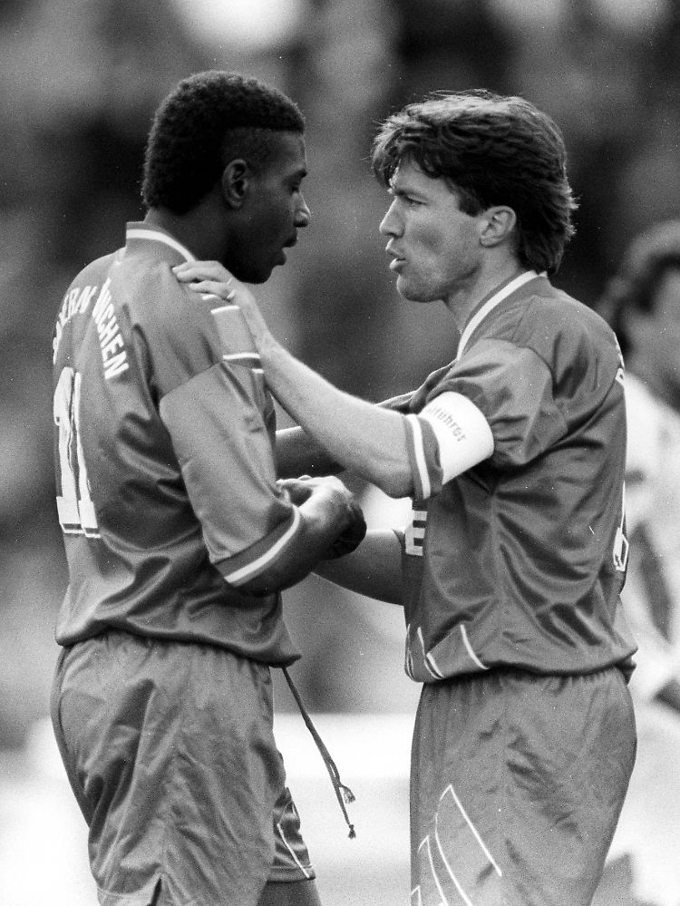 "Ey, Mädels, unser Schwarzer hat den Längsten!" Lothar Matthäus, hier mit Jan Åge Fjørtoft.