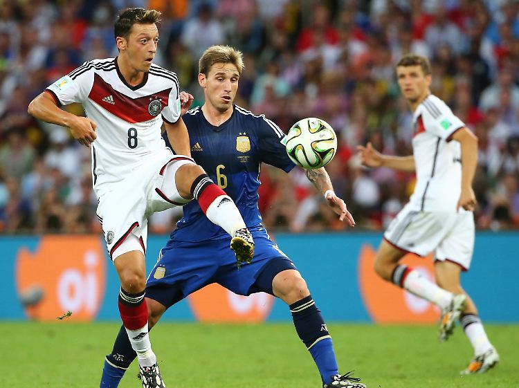Die deutsche Mannschaft war im tosenden Maracana, in dem sich zunächst vor allem die Argentinier lautstark bemerkbar machten, früh zu einer ersten guten Gelegenheit gekommen. Nach einem Foul von Marcos Rojo an Thomas Müller schoss Kroos den Freistoß aber in die Mauer (4). Im Gegenzug verpasste Higuain aus spitzem Winkel. Danach war die DFB-Auswahl um ein sicheres und schnelles Aufbauspiel bemüht - jeder gelungene Pass wurde von den nicht-argentinischen Zuschauern mit einem lautstarken "Ole" gefeiert. Aber auch die Argentinier begannen sehr entschlossen und offensivfreudig. Lionel Messi rannte bei Vorstößen über die rechte Seite zweimal Mats Hummels davon, fand aber keine Abnehmer im Strafraum.