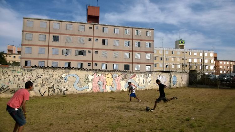 In einem Hinterhof in Itaquera, tief im sozial ärmeren Osten der Metropole São Paulo, kicken sich Vinicius und Ronaldo Rai auf einem kleinen eingezäunten Bolzplatz etwas unmotiviert die Bälle zu. Es ist Sonntagvormittag. Als die beiden Jugendlichen, 16 und 15 Jahre, an dem Platz ankamen, war er verwaist. Auch der Betonplatz ein paar Straßenecken weiter ist noch leer. Also warten Vinicius und Ronaldo Rai. Auf Mitspieler.