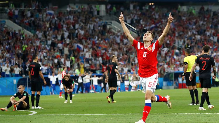 Elfmeterschießen: Elfmeterschießen: Subasic hält gegen Smolow, 0:1 Brozovic, 1:1 Dsagojew, Akinfejew hält gegen Kovacic, Fernandes schießt am Tor vorbei, 1:2 Modric, 2:2 Ignaschewitsch, 2:3 Vida, 3:3 Kusjajew, 3:4 Rakitic
