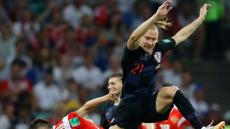 101. Minute TOOOOOR FÜR KROATIEN: Sehen wir hier etwa die Wiederholung des englischen Spiels? Das ist ja ein Treffer nach Standardsituation! Das Erfolgsversprechen scheint sich rumgesprochen zu haben, zumal die russische Abwehr der kurzzeitigen Verteidigungsamnesie erliegt. Domagoj Vida taucht plötzlich vor Akinfejews Tor auf – da haben die Russen nicht mit gerechnet. Die Kugel rutscht geschmeidig über den gewagt gestylten Schopf des Innenverteidigers und fliegt ins Netz. Naja, mehr ein Flügchen. Egal, trotzdem drin und die Verwarnung für den Trikot-Striptease gibt's gratis.