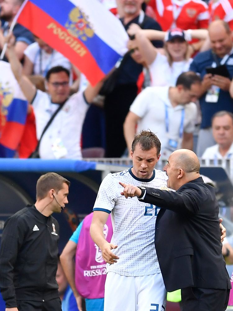 Das Ende der großen WM-Reise ist das Viertelfinale in Sotschi. Doch Tschertschessow lässt nichts unversucht und will das heimische Publikum in den entscheidenden Minuten der Verlängerung hinter sich wissen. Er guckte böse und wedelt mit dem Armen in Richtung der russischen Fans. Und es gelingt. Russland gleicht Last-Minute aus, Elfmeter-Thriller. Smolov und Fernandes flattern die Nerven. Es reicht nicht, um den Traum der Heim-WM weiter zu leben. Der Trainer reagiert am Ende ungewöhnlich wie immer: "Wir fühlen uns ein bisschen wie Wehrpflichtige, die früh abgezogen wurden".