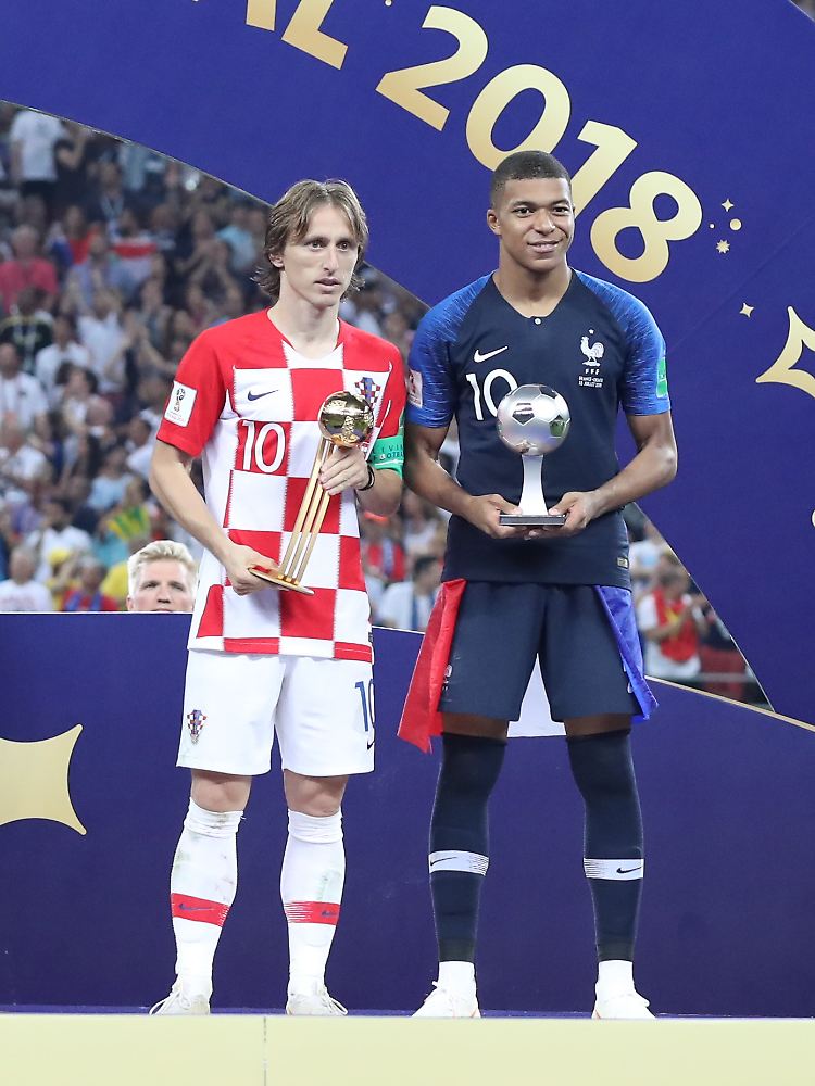 Den Goldenen Ball, die Auszeichnung als bester Spieler des Turniers, nahm Luka Modric emotionslos entgegen. Kylian Mbappé freute sich schon etwas mehr, als bester Nachwuchsmann geehrt worden zu sein.