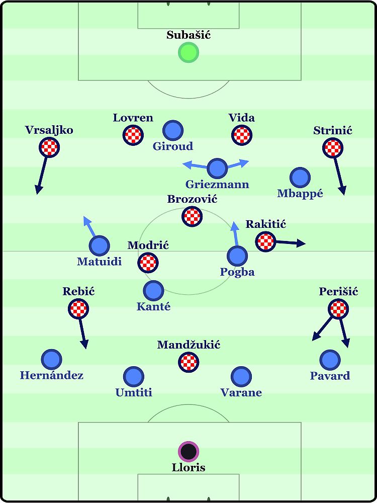 Der französische Treffer gegen die "roten Teufel" durch Innenverteidiger Samuel Umtiti fiel nach einem Eckstoß, bei dem die Franzosen den Laufweg von Umtitis Gegenspieler Jan Vertonghen blockierten. Standardsituationen sind auch für die Équipe ein wichtiges Mittel und können die so wichtige Führung bescheren. Dass Kroatien zudem defensiv anfällig bei Eckbällen und Freistößen ist, macht es für den Außenseiter nicht leichter.