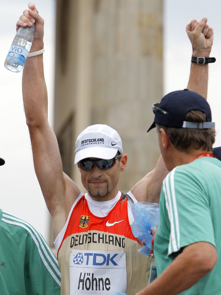 Freud und Leid gab es für den Gastgeber allerdings am siebten WM-Tag. Glänzend lief es bei André Höhne über 50-Kilometer-Gehen: Vor dem Brandenburger Tor kämpfte er sich auf Platz fünf und blieb in 3:43:19 Stunden fast sechs Minuten unter seiner Bestzeit. "Unglaublich - ich habe alles ausgereizt, mehr war absolut nicht drin", meinte Höhne. Über 20 Kilometer hatte er den 14. Platz belegt. Auf der lange Distanz gewann der Russe Sergej Kirdjapkin in der Weltjahresbestzeit von 3:38:35 Stunden.