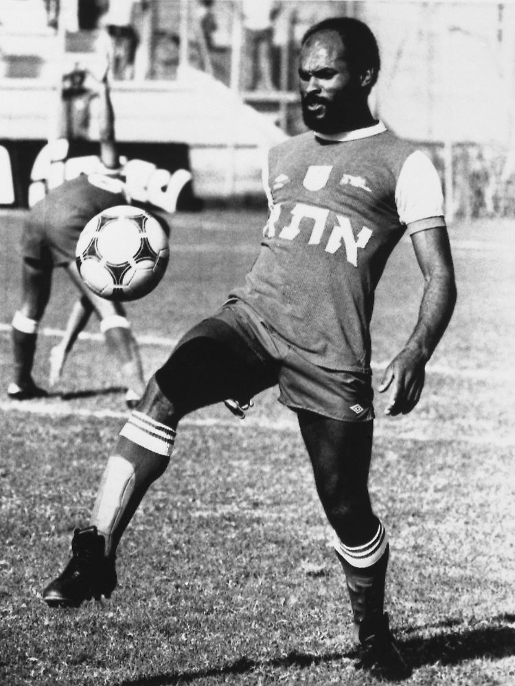 Der israelische Fußballstar Rifaat Turk trainiert 1981 im Stadion seines Vereins Hapoel Tel Aviv.