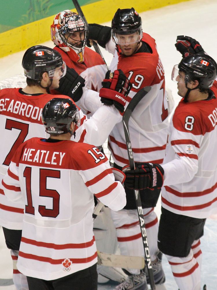 Wie Vonn am Boden ist Gastgeberland Kanada – allerdings deshalb, weil man seinen Eishockey-Profis zu Füßen liegt. Die zogen durch ein 7:3 gegen Weltmeister Russland ins Halbfinale ein. Schon nach dem ersten Drittel kochte der mit 19.300 Zuschauern ausverkaufte Canada Hockey Place über, immer wieder schallte "Go Canada Go" durch die Arena.