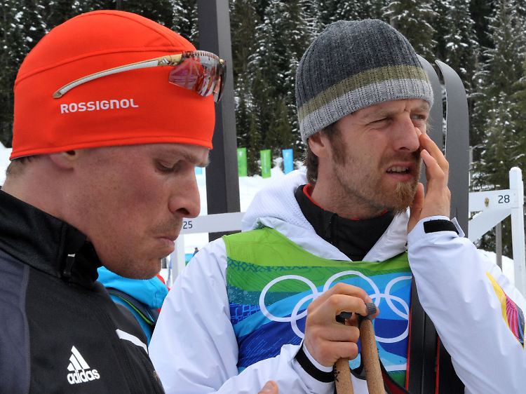 So sehen Besiegte aus: Tobias Angerer und Axel Teichmann steht der Frust über Platz sechs mit der Staffel ins Gesicht geschrieben.