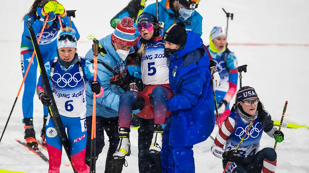 Bronze holte sich bei den Winterspielen in Zhangjiakou so noch ihre Teamkollegin und Freundin Tiril Eckhoff. "Sie ist bei Bewusstsein und wird medizinisch betreut. Ihr geht es okay", sagte Eckhoff. Am letzten Anstieg der anspruchsvollen Strecke war deutlich zu sehen, wie Tandrevold "blau geht", wie es im Biathlon heißt - also in den Bereich, in dem die Muskulatur übersäuert. Im Fall der Norwegerin waren die Kraftreserven deutlich vor dem Ziel aufgebraucht und sie verlor in der Schlussphase elf Plätze und erreichte das Ziel letztlich auf Rang 14.