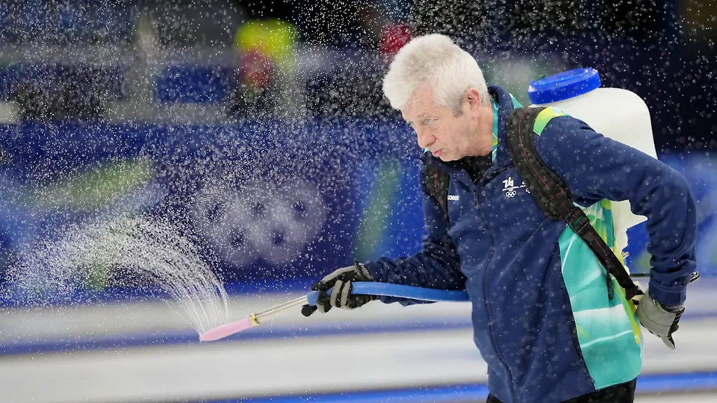 Eismachen ist Kunst und Wissenschaft. Für das "Pebbling" nutzen die Eismacher speziell aufbereitetes Wasser. Rund 20.000 Liter werden es am Ende der Spiele wohl gewesen sein. Der pH-Wert wird runterreduziert. Das Wasser ist "sauer." Ungenießbar. "Wenn du das trinkst, verbrennt es dich innerlich", sagt Callan. Die Pause ist zu Ende. Bald muss wieder "gepebbled" werden.