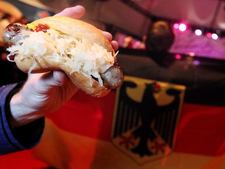 A German Bratwurst with Sauerkraut: Über 2000 Thüringer Bratwürste vertilgen die Fans jeden Tag.