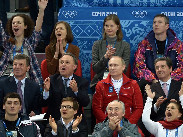 Er kam, sah und Russland siegte: Präsident Wladimir Putin beim Olympiasieg des russischen Eiskunstlauf-Teams.
