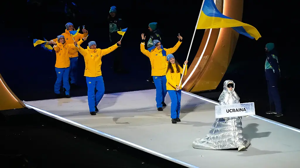 Ausgerechnet eine in Mailand lebende Russin hat bei der Eröffnungsfeier der Olympischen Winterspiele die ukrainische Auswahl ins San-Siro-Stadion geführt. Die Architektin Anastasia Kutscherowa trug bei der Nationenparade während der Zeremonie in der legendären Fußball-Arena das Plakat mit dem Ländernamen Ukraine, wie die Nachrichtenagentur AP berichtete. Hinter der Russin liefen die ukrainische Fahnenträgerin Jelysaweta Sydorko und einige ihrer Teamgefährten ins Stadion.