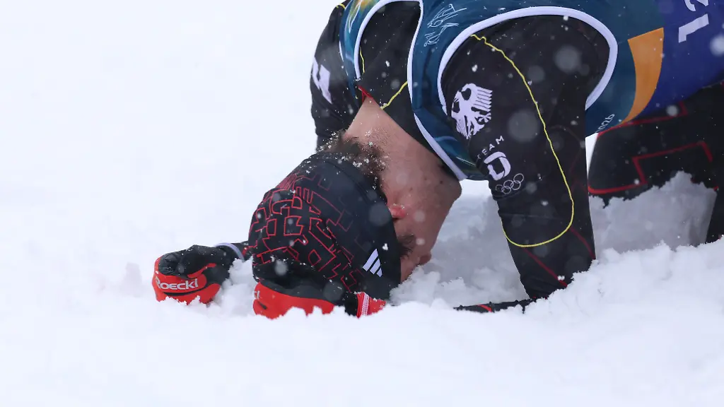 Lange Zeit sieht es nach einer sicheren Medaille für die Nordischen Kombinierer aus, bis Vinzenz Geiger gleich zweimal stürzt. Im Ziel ist er untröstlich und sucht nach Erklärungen. Auch sein Kollege Johannes Rydzek kann ihn nicht aufmuntern.
