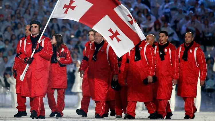Mit Trauerflor und einem schwarzen Band an der Flagge zog die georgische Mannschaft in das Stadion ein. Der elfköpfigen Delegation war der Schock nach dem tödlichen Unfall am Morgen deutlich anzusehen. Alle Zuschauer erhoben sich von ihren Plätzen und applaudierten.