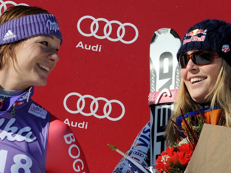 Lindsey Vonn (r) und Maria Riesch wollen ihren Medaillenhunger stillen.