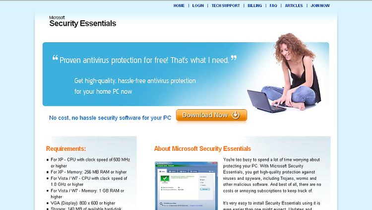 Die Seite sei stark an das Design von Microsoft angelehnt und auf den ersten Blick nicht als Fälschung zu erkennen. Wer hier auf die vor dem Download geforderte Registrierung eingeht, schließe ein Drei-Jahres-Abo für 35,94 Euro ab.