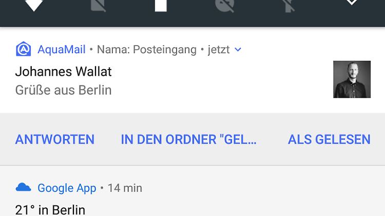 In den Benachrichtigungen können Nutzer in "Nougat" jederzeit direkt auf Nachrichten antworten. Zusammengehörige Mitteilungen werden gebündelt und können bei Bedarf auch in der Benachrichtigungsleiste auseinandergezogen werden.
