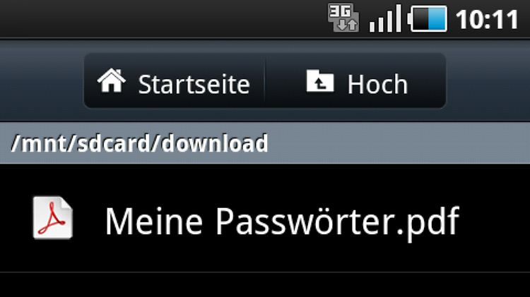 Da Android das sogenannte Sandbox-Prinzip nutzt, kann das spionierende Javascript aber nicht auf Daten außerhalb der SD-Karte zugreifen - beispielsweise Systemdateien. Hacker müssen außerdem den genauen Pfad und Namen der Datei kennen, die sie haben wollen. Da Android aber Standard-Pfade benutzt, ist dies nicht allzu kompliziert.