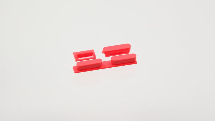 Auf diesem Foto sollen die Lautstärke-Knöpfe eines roten iPhone 5C zu sehen sein.