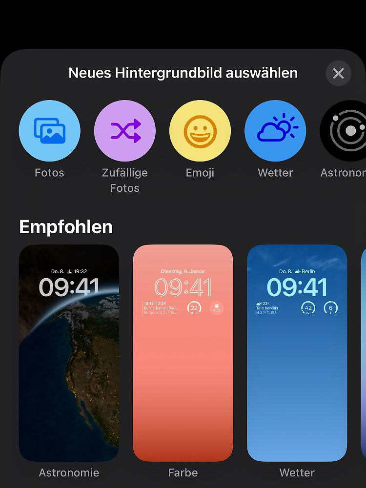 Um die Funktion zu nutzen, tippt man einfach lange auf den Sperrbildschirm. Danach kann man den bestehenden anpassen oder einen neuen hinzufügen. Tippt man auf das Plus-Zeichen, sieht man verschiedene Hintergrund- und Motiv-Vorschläge, die man annehmen und danach die bestehenden durch eigene Widgets ersetzen kann. Es gibt aber auch die Möglichkeit, einen Sperrbildschirm komplett selbst zu gestalten. Hat man mehrere erstellt, kann man sie durchwechseln, indem man seitwärts wischt.