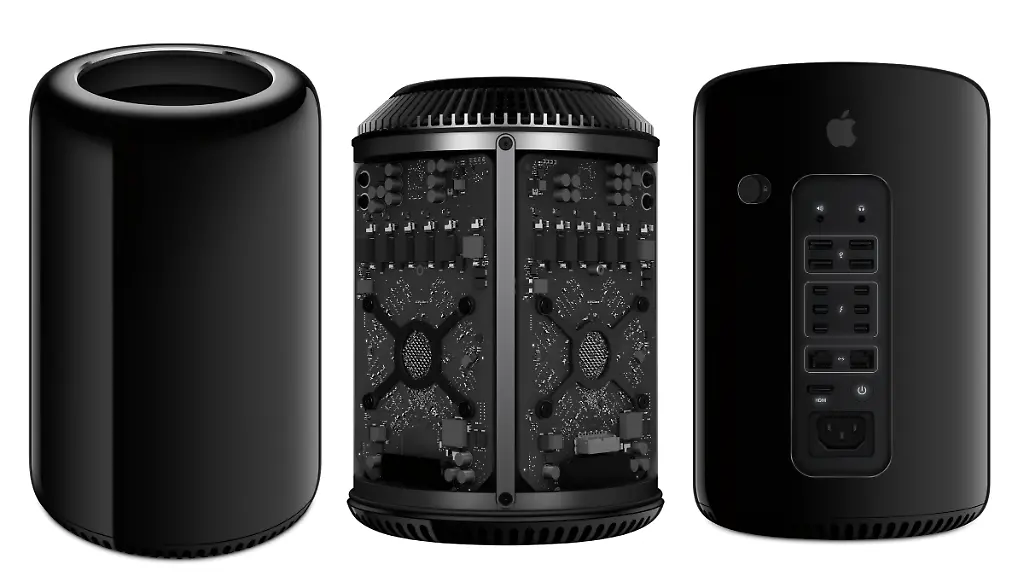 Das Design des Kraftpakets ist außergewöhnlich. Apple hat es geschafft, alle Komponenten in einem 25,1 x 16,7 Zentimeter kleinen, drehbaren Metallzylinder unterzubringen. Möglich macht dies vor allem eine Architektur, bei der sich die Wärme nicht staut und von einem Lüfter wie bei einem Kamin effizient nach oben abgeleitet wird. Dadurch ist der Computer trotz seiner Leistungsfähigkeit auch sehr leise. Der Mac Pro hat sechs Thunderbolt-2-Anschlüsse mit einer Bandbreite von bis zu 20 Gigabit pro Sekunde, die jeweils sechs in Reihe geschaltete Geräte unterstützen können.