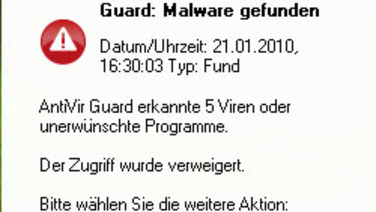 Wenn der Echtzeitscanners fündig wird, informiert AntiVir den Anwender mit einem unauffälligen Slide-Up-Fenster. Die Malware-Funde werden zusammenfassend angezeigt, der Zugang zu verdächtigen Dateien automatisch blockiert. Damit ist ausgeschlossen, dass infizierte Dateien unbeabsichtigt ausgeführt werden.