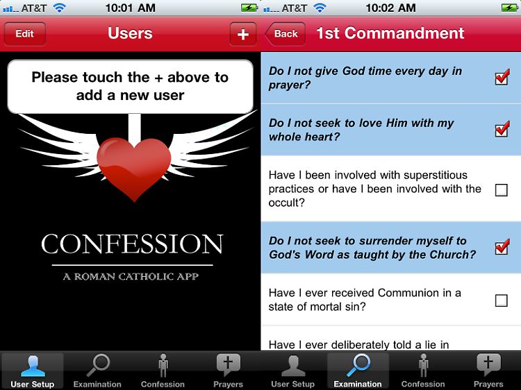 Welcher Katholik kennt das nicht: Die Beichte steht bevor und es will einem einfach keine ordentliche Sünde einfallen. Oder das Sündenregister ist so lang, dass man schon den Überblick verloren hat. Aber Apple sei Dank gibt es jetzt auch für solche Probleme eine App: "Confession: A Roman Catholic App" ("Beichte: eine römisch-katholische App"). Sie "ist die perfekte Hilfe für jeden reuigen Sünder", heißt es in der iTunes-Beschreibung. Die App bietet "jedem Nutzer eine personalisierte Gewissensprüfung, passwortgeschützte Profile und eine Schritt-für-Schritt-Anleitung zum Sakrament" (der Beichte).