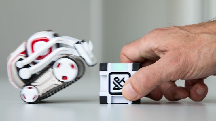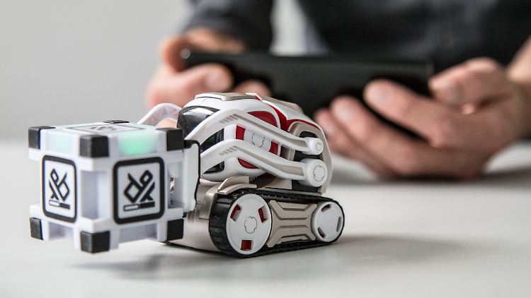 Um den etwa tennisballgroßen Roboter mit Gummikettenantrieb zum Leben zu erwecken, muss man zuerst eine App auf dem Smartphone installieren. Sie verbindet sich per WLAN mit Cozmo, wenn man einen Code eingibt, den das Display in seinem würfelförmigen Kopf anzeigt. Kontakt zum Hersteller nimmt Cozmo laut Anki nicht auf, er ist kein Spion im Kinderzimmer. Der Bildschirm ist Cozmos Gesicht, in dem er nur mit seinen animierten Augen viele Emotionen darstellen und so lieb gucken kann, dass man ihn vom ersten Augenblick ins Herz schließt. Es ist kein Zufall, dass Cozmo aussieht wie eine Mischung aus Trickfilm-Roboter Wall-E und dessen Freundin EVE. An seinem Design haben ein ehemaliger Pixar-Angestellter und andere Trickfilm-Profis maßgeblich mitgewirkt.