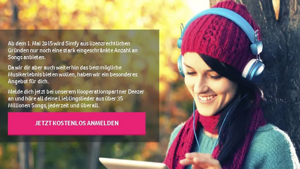 Auf dem hart umkämpften Markt der Musikstreaming-Dienste herrscht viel Bewegung. Nachdem Grooveshark am 30. April sein Angebot eingestellt hat, ist jetzt auch Simfy am Ende. Seit dem 1. Mai wird Bestandskunden angeboten, zu Deezer zu wechseln, Neukunden werden direkt dorthin weitergeleitet. In einer aktuellen Pressemitteilung ist von einer strategischen Partnerschaft mit Deezer die Rede. Simfy ging 2010 in Deutschland, Österreich und der Schweiz an den Start. Jetzt verzichte man auf große Teile des Katalogs und schließe sich mit Deezer zusammen, um sich auf dem deutschen Streaming-Markt behaupten zu können.