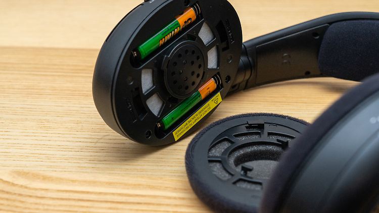 Für das geringe Gewicht ist zwar der konsequente Einsatz von Plastik nötig, weswegen der RS 120-W zunächst einen etwas billigen Eindruck hinterlässt. Die Verarbeitung ist aber hochwertig und erfreulicherweise auch nachhaltig. Die Polster sind im Handumdrehen gewechselt und statt eines fest verbauten Akkus stecken in der linken Muschel zwei aufladbare AAA-Batterien. Dank des stromsparenden Audio LE halten sie bis zu 20 Stunden durch.