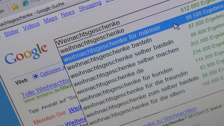 Google-Abfrage mit dem Suchbegriff "Weihnachtsgeschenke": Bei Internetsuchen stoßen Nutzer plötzlich überall auf passende Angebote.