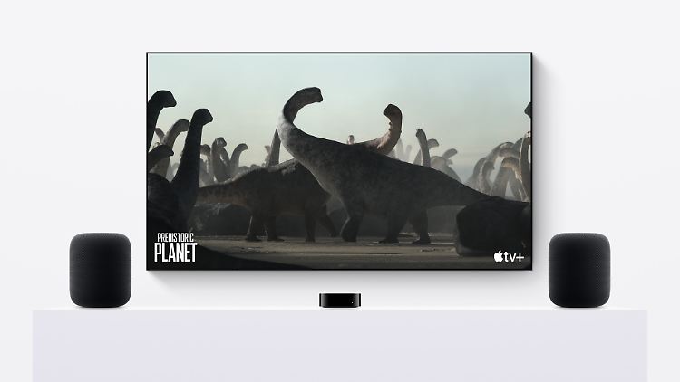 Ein HomePod-Paar kann auch locker eine gute Soundbar am Fernseher ersetzen. Beeindruckend ist ebenfalls hier die Klarheit der Wiedergabe, unter anderem sind Dialoge sehr gut zu verstehen. Wenn sie mit einem aktuellen Apple TV 4K angeschlossen sind und das TV-Gerät beherrscht eARC, können die Lautsprecher Ton auch in Dolby Atmos wiedergeben. Unter idealen Bedingungen hat man dann schon mal den Eindruck, einen Helikopter über sich zu hören. Mit einem Surround-System kann ein HomePod-Paar allerdings nicht konkurrieren.