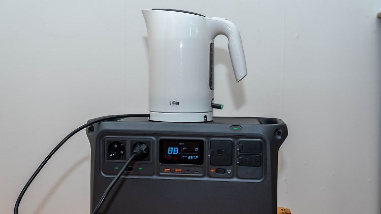Lediglich kurz vor der Überlastung dreht der Ventilator hörbar auf. Das passiert aber kaum mit einem Gerät, dass man nachts im Zelt oder Wohnwagen betreiben möchte. Die DJI Power 1000 liefert eine maximale kontinuierliche Ausgangsleistung von 2200 W, kurzzeitig geht auch mehr. Damit kann man auch etliche Wasserkocher betreiben, im Test schaltete sich das Gerät aber beim Betrieb eines 2500-W-Wasserkochers nach etwa 30 Sekunden ab.