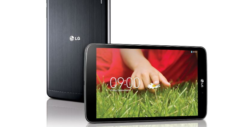 Nachdem LG in New York bereits sein neues Superphone G2 vorgestellt hat, das Ende September zu einer unverbindlichen Preisempfehlung von 599 Euro nach Deutschland kommt, präsentiert das südkoreanische Unternehmen in Berlin ein Tablet mit acht Zoll großem Full-HD-Display. In dem 338 Gramm leichten G Pad 8.3 steckt ein Snapdragon 600, dessen vier Kerne mit 1,7 Gigahertz getaktet sind. Der Arbeitsspeicher ist zwei Gigabyte groß, der Akku hat eine Kapazität von 4600 Milliamperestunden. Das Tablet, das mit Android 4.2.2 läuft, hat eine 5-Megapixel-Kamera auf der Rückseite, vorne eine mit 1,3-Megapix eln.