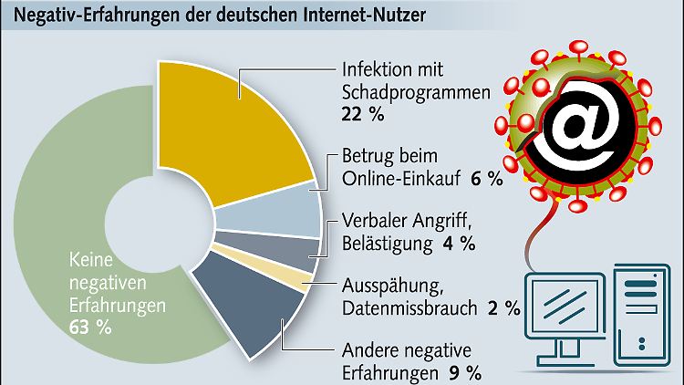 Auch nach anderen negativen Erfahrungen fragten Mitarbeiter des Instituts ARIS. Demnach sind sechs Prozent der Nutzer bereits beim Online-Einkauf Betrügern auf den Leim gegangen, vier Prozent schon verbal angegriffen oder belästigt worden. Von Missbrauch persönlicher Daten oder zumindest von Ausspähungen konnten zwei Prozent berichten. Die positive Seite: Immerhin 63 Prozent gaben an, sie hätten beim Surfen noch keinerlei negative Erfahrungen gemacht.