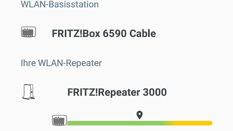 Im Test mit einer Fritzbox Cable 6590 war der WLAN-Verstärker durch zwei massive Wände hindurch noch bei knapp 20 Metern Entfernung im grünen Bereich. Mit einer Fritzbox 7580 waren bei gleicher Distanz vier Rigips-Wände kein Problem.
