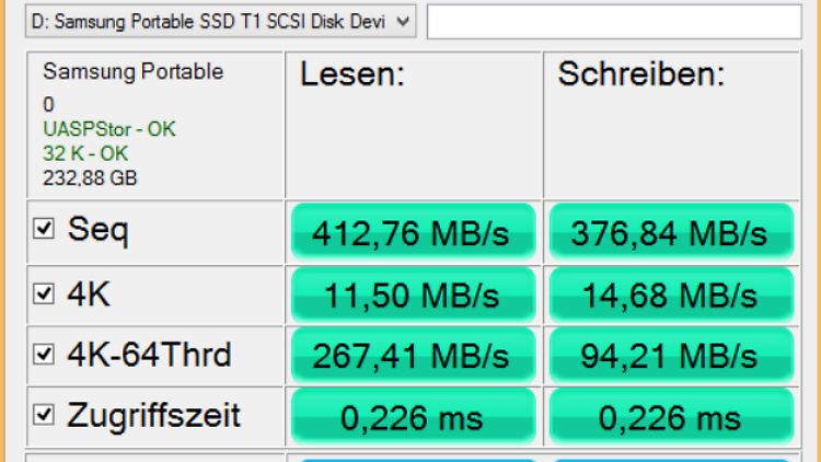 Die Unterschiede sind besonders bei den Schreibraten teilweise deutlich, für das schnelle Speichern und Lesen größerer Dateien sind aber alle Testkandidaten im Alltagseinsatz geeignet. Kommt die SSD beim Bearbeiten von hochauflösenden Videos oder ähnlich anspruchsvolen Arbeiten zum Einsatz, ist aber eines der Modelle mit der besten Gesamt-Performance empfehlenswert.