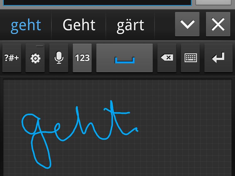 Bei der Texteingabe macht sich der S Pen nicht nur durch seine Treffsicherheit nützlich. Wählt man die Samsung-Tastatur als Eingabemethode, kann man eine SMS oder E-Mail auch handschriftlich via Texterkennung eingeben. Dies funktioniert erstaunlich gut, selbst die krakelige Handschrift eines Test-Kollegen wurde korrekt ausgelesen.