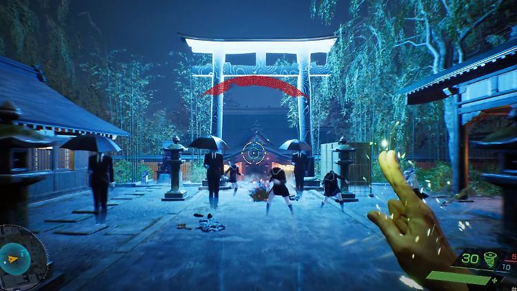 Die Geister stürmen in der Regel blind auf Akito zu, man weicht zurück und erledigt so einen nach dem anderen - oder mit einer großen Energiewelle alle auf einmal. Das wiederholt sich dann mit den immergleichen Gegnern, die nur minimale Abstufungen erhalten. Mal schleppt der Geist ein Messer mit sich, mal schützt er sich mit einem großen Regenschirm vor Angriffen oder schießt langsam voranschreitende Feuerkugeln als Barriere. Die Ego-Perspektive verbietet hier leider jede Dynamik. Zudem ist die Methode, Gegner aus dem Hinterhalt mit einem Schlag auszuschalten, viel zu effektiv. Einfach anschleichen und den Kern des Geistes extrahieren - das klappt bei nahezu allen Gegnerklassen.