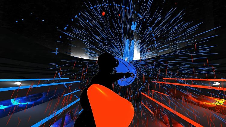 Das Spiel, das mit einfachen Mitteln viel herausholt, ist "Audioshield". Zu den Beats von frei wählbarer Musik wird man dabei von blauen und orangefarbenen Neon-Kugeln beschossen, die man mit gleichfarbigen Schilden abwehren muss. Hat man den Dreh raus, beginnt man zu tanzen statt zu kämpfen.