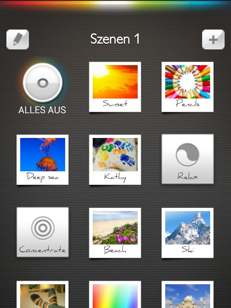 Um Farbe ins Spiel zu bringen, kann man zunächst eine der voreingestellten Szenen in der App auswählen. Sie bieten unter anderem Farbkombinationen, die Str andstimmung verbreiten, der Konzentration oder Entspannung dienen. Szenen, die die Stimmung positiv beeinflussen sollen, hat Philips unter "Rezepten" gesammelt. Natürlich fehlt auch ein Sonnenuntergang nicht in den Szenen. Und wer noch mehr voreingestellte Apps haben möchte, findet viele weitere in der Hue-Community.